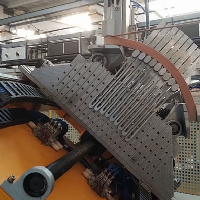 主要由放線機構、理線機構、入線組合機構,可調扁繞模具組合機構,弧度轉繞機構,主機旋轉組合機構以及電氣控制系統等幾大部分組成。