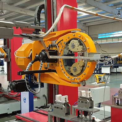 非接觸式3D示教系統(tǒng)為我公司最新研發(fā)。由一套尺寸僅為130*75*35mm的測量裝置組成,安裝于包帶機包帶頭上,配套程序內(nèi)置于包帶機系統(tǒng)內(nèi)。適用于我司不同型號的CNC及機器人包帶機使用。此示教系統(tǒng)的導入,結(jié)束了人工示教操作的歷史,從而改善了線示教精度的穩(wěn)定性,因此提高了包帶品質(zhì)。